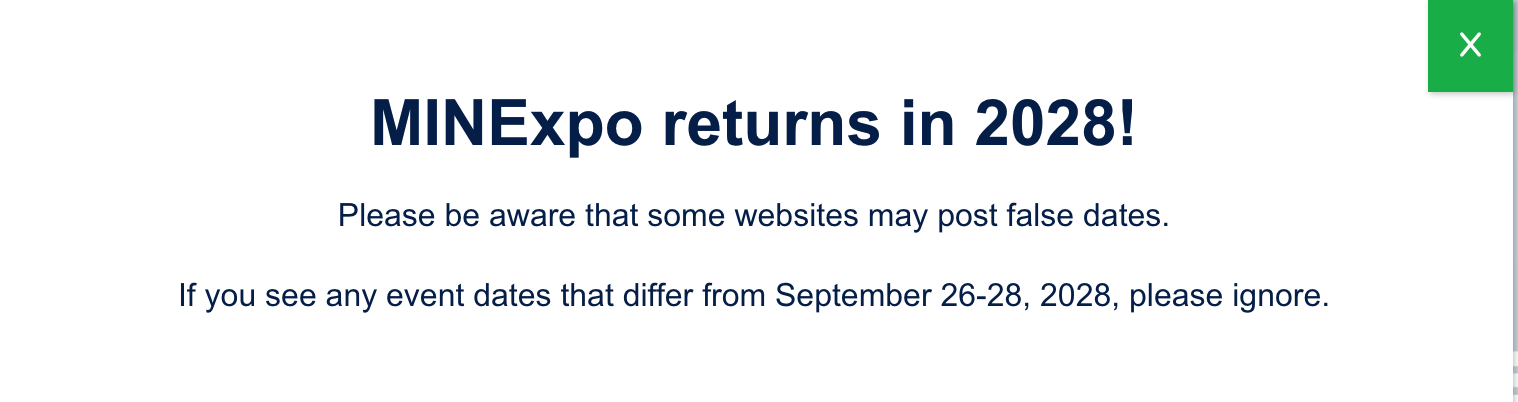 دورهی قبلی ماین اکسپو سپتامبر سال گذشته برگزار شد و دورهی بعدی نیز سپتامبر ۲۰۲۸ خواهد بود. این نمایشگاه بزرگترین رویداد جهانی در حوزهی معدن است و برندهای بزرگ ماشین آلات معدنی، حفاری و سیستمهای هوای فشرده در آنجا حضور دارند. دنبال کردن نمایشگاه ماین اکسپو برای فعالان حوزهی کمپرسور پرتابل و دیزلی و تجهیزات مرتبط با معادن همچون دریلهای هیدرولیک و پنوماتیک از نان شب واجبتر است. این نمایشگاه از عظمت و زرق و برق آشنای امریکایی و لاس وگاسی بی بهره نیست: